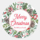 Frohe Weihnachten Wintergrün Rote Kalligrafie Klassischer Rundsticker