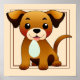 "Der fröhliche, braune Welpe im Cartoon-Style": Ein süßer, kleiner brauner Hund sitzt fröhlich mit einem breiten Lächeln auf seinem Gesicht. Seine großen, glänzenden Augen strahlen Freude aus, während seine Ohren lebendig in die Luft zeigen. Der Hund hat ein weiches, braunes Fell mit einem hellen Fleck auf der Brust. Mit seiner fröhlichen Haltung und dem verschmitzten Blick bringt er sofort ein Lächeln auf jedes Gesicht. Ein perfektes Bild für alle, die Freude, Wärme und die Unbeschwertheit eines jungen Welpen schätzen.