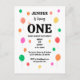 Versenden Sie fröhliche Grüße mit dieser farbenfrohen Postkarte mit einem lebendigen Ballonhintergrund, ideal für die Einladung von Freunden und Familie zum ersten Geburtstag Ihrer Kleinen!