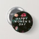 Herzlichen Glückwunsch Frauen Tag weißer Text auf blühend marineblau Hintergrund.