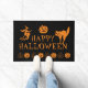 Fröhlicher Halloween-Trick oder leckeres Dekor Doormat Schwarz und Orange, Kürbislaterne, Kürbis, Hexe, Geist, Schädel, Mond, Schwarzkatze