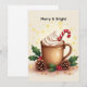 Verschicken Sie warme Weihnachtsgrüße mit dieser gemütlichen Weihnachtskarte mit einer festlichen Tasse Kakao, belegt mit Schlagsahne, Zuckerstange und Stechpalmenblättern. Der Text Fröhlich & Hell fügt einen fröhlichen Charme hinzu — und Sie können ihn leicht bearbeiten oder entfernen, um Ihre eigene persönliche Nachricht zu erstellen. Perfekt, um Freude zu verbreiten, Geschenke zu begleiten oder eine gemütliche Nachricht in dieser Weihnachtszeit zu teilen.