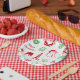 Ein fröhliches rotes und grünes Weihnachtsmuster mit niedlichen Urlaubssymbolen wie Weihnachtsmann, Schneemänner, Kerzen, Glocken, Stechpalmen und festlichen Dekorationen. Dieser lustige handgezeichnete Stil fügt Ihren Weihnachtsfeiern einen fröhlichen saisonalen Touch hinzu. Perfekt für Partys, Abendessen und Weihnachtsfeiern.