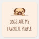 Fröhlicher Mops Dog Peeking über Zitat Quadratischer Aufkleber