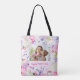 Helle blumengeschmückte Muttertagstasche mit dem Text "Beste Mama je". Sie können das Foto und den Text personalisieren.