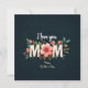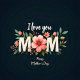 Ein Blumenarrangement mit dem Text "I Liebe You Mama" und "Happy Mother's Day" vor einem dunklen Hintergrund.