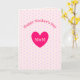 Glückliche Muttertagskarte mit einem großen Herz und das Wort MAMA in der Mitte auf einem hellrosa Hintergrund mit rosa Herzmuster. Texte innerhalb der Karte können individuell angepasst werden.