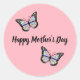 Fröhlicher Muttertag Rosa und schwarze Schmetterli Runder Aufkleber