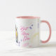 Helle blumengeschmückte Mutter Tag Tasse mit Foto und Text. Sie können die Fotos und Texte personalisieren.