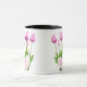 Pink Tulip Bouquet Happy Mother's Day Tasse Diese Keramik Kaffee Tasse zeigt ein schönes Design von rosa Tulpen mit der Meldung "Happy Mother's Day" in einer Herzform geschrieben. Es ist ein perfektes und erschwingliches Geschenk für Mama, um Ihre Wertschätzung am Muttertag zu zeigen. Design: Tasse mit Blumen, Bouquet-Tasse, Tasse mit rosa Tulpen.