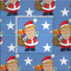 Fröhlicher amerikanischer Präsident Donald Trump Santa Claus. Weihnachts blaues Wintermuster mit Sternen.