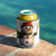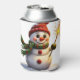 Ein festlicher Schneemann mit rotem Hut und Schal während eines schneebedeckten Winters.