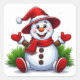 fröhlicher Schneemann in Rot mit Hut gekleidet Quadratischer Aufkleber