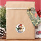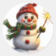 Ein festlicher Schneemann mit rotem Hut und Schal während eines schneebedeckten Winters.