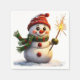 Ein festlicher Schneemann mit rotem Hut und Schal während eines schneebedeckten Winters.