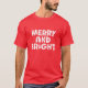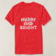 Ein fröhlicher T - Shirt zum Weihnachtsthema mit zeitgenössischer Schrift in Kleinbuchstaben, in dem "Fröhlich und hell" steht. Die Textfarbe (weiß) und der Stil des roten T - Shirt.