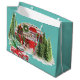 Fröhlicher und heller Retro-roter LKW Xmas blauer Große Geschenktüte