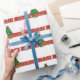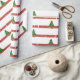 Fröhlicher Weihnachtstext und Bäume Moderner Urlau Geschenkpapier