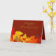 Erntedank-Urlaubskarte mit roten und orangefarbenen Blätter. "Happy Thanksgiving" Gruß auf der Vorderseite in modernen, handgeschriebenen Schrift, ist gelb über braun. Im Inneren personalisieren Sie Ihre persönliche Begrüßung und Unterschrift. Diese Karte kommt in drei Größen.