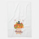 Fröhliches Erntedankpumpkin mit Hats und Blätter Geschirrtuch