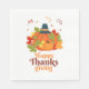 Fröhliches Erntedankpumpkin mit Hats und Blätter Serviette