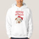 Entzückende Watercolorillustration eines weißen amerikanischen Grubenstierterrierhundes mit einer roten Weihnachtsmannmütze. Sie sagt "fröhliches Pitmas" über dem Hund. Vervollkommnen Sie Entwurf für Pitbullliebhaber und -Eigentümer, damit sie ihre Haustiere zum Spaßfeiertagsgeist mit einschließen konnten!
