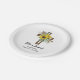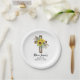 Happy gelbe Sonnenblumen, Eukalyptus und erdgrünes Pampasgras, das auf einem dunklen Holzkreuz ausgestellt ist, schaffen ein elegantes, blumengeschmücktes Design für Ihre Taufe-Teller. Diese Teller eignen sich perfekt für Spätsommer oder Herbsttaufe.