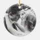 Bist du dieses Jahr verheiratet geworden? Fügen Sie Ihrem Baum eine Erinnerung mit diesem minimalistischen Sake-Keramik-Ornament, das ein einfaches Design mit Ihren Namen und die Nachricht "fröhlich und verheiratet" zusammen mit einem schwarzen Herzchen auf einem weißen Hintergrund. Die Rückseite hat das Jahr Ihrer Hochzeit über Ihrem Lieblings-Foto. Dieses moderne Ornament ist auch ein großartiges Geschenk für ein frisch vermähltes Paar zu Weihnachten.