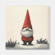 Eine bezaubernde Abbildung eines festlichen Gnoms, gekleidet in einem lebendigen, roten Hut und Mantel, stehend in einer ruhigen, verschneiten Landschaft. Der lange, weiße Bart und der skurrile Nase flüchtige Blick aus der Höhe, spitzer Hut, der ein Gefühl von Urlaubsfreudigkeit und nordischer Folklore hervorruft.
