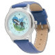 Kinderuhr aus Edelstahl mit blauem Lederarmband