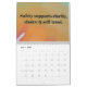 This calendar is a year-long companion for healing, reflection, and transformation. Each month invites you to slow down, reconnect w/ yourself and move w/ intention through life's seasons. Featuring encouraging affirmations and original artwork, this calendar is designed to support emotional wellness, self-awareness and growth. One day at a time!