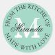 From the kitchen of round classy custom monogram Classic Round Sticker. Elegant homemade food labels for baking and cooking products. Add your own name initial letter. Vintage and script typography. Classy monogrammed design with chic fonts. Handy labels and bag seals for wedding party favors, cakes, cookies, brownies, muffins, cupcakes and other baked goods.
