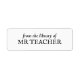 Celebrate and organize with our Custom From the Library of Teacher Book Labels. Designed to add a personal touch, these labels are perfect for teachers to mark and identify their classroom books effortlessly. Made from durable, high-quality adhesive material, they stick securely and are easy to remove without damage. Customizable with your teacher name or personal message, these labels help promote organization, preserve book ownership, and add a professional look to your classroom library. Ideal for teachers, educators, and school librarians, these labels are a practical and stylish solution for classroom management and personalization.
