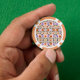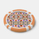 Front and back views of a poker chip with a colorful floral pattern featuring orange, purple, and black flowers. The chip has orange and white segments.