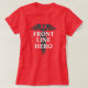 Dieses Shirt ist für diejenigen gedacht, die ihr Leben aufs Spiel setzen, kümmernd für die Coronavirus-Patienten in Krankenhäusern und Zuhause. Die Vorderseite des Shirts hat ein großes medizinisches Kaduceus-Symbol auf dem Hintergrund und "Front Line Hero" in großen, fett weißen Buchstaben.