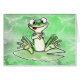 Ist hier haftet ein freundlicher Frosch und heraus seine Zunge und sitzt auf einer Lilienauflage. Dieser Cartoonentwurf wurde mit Watercolor, farbigem Bleistift und Tinte geschaffen.