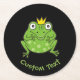 Grüner Frosch Cartoon mit goldener Krone. Prinzfrosch. Benutzerdefinierte Hintergrundfarbe. Eigener Text.