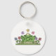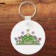 Ein niedlicher frostiger Schlüsselanhänger mit einem bezaubernden grünen Frosch in einem Blumengarten!