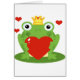 Gekrönter Froschkönig, der ein nettes rotes Herz hält.