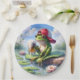 Ein whimsikaler Frosch mit einer roten Kappe sitzt auf einem Lilienpolster und hält eine frostige Bierkraut-Tasse.