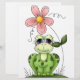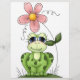 Niedlich lächelnder Frosch mit rosa Blume.