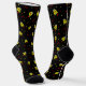 Gemusterte Socken mit Fröschen und rote Rosen auf schwarzem Hintergrund