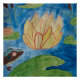 Exotisch und farbenfroh, ein auffälliger und attraktiver Frosch und Wasserlilien original Aquarell. Der schüchterne kleine Frosch, braun und türkisblau gestrichen, sucht nach einem sicheren Lilienpolster, zu dem man springen kann. Das tiefe Wasser des Teiches hat prächtige gelbe Wasserlilien und reiche grüne Lilienpolster, die auf der Oberfläche schwimmen, und es wachsen tiefe braune Polster.