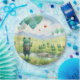 Ein fröhlicher Frosch mit blaugrünen Ballons steht an der Spitze einer üppigen Wiese, im Hintergrund sind mehrere andere Frösche darstellend, ein synchronisierter Tanz. Zwei kleine, rote, herzförmige Ballons schweben inmitten der größeren Ballons und fügen eine Touch Launen hinzu.