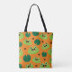Niedliche Frösche und Lilienpads Totenbeutel mit bearbeitbarem Text. Orangefarbener Hintergrund mit grünen Fröschen und Lilienpolster. Gut für Lebensmittel, Strand, Schule, Uni.