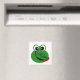 Frösche Regelknöpfe, Schlüsselanhänger, Tasse, Mousepads, T - Shirt und mehr mit einem grünen Frosch mit großen Augen und einer roten Zunge, die sich herausklebt und "Frösche Regel" lautet!