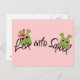 Rosa mit einem Mädchen und einem Jungen Frosch über der Phrase "Leap into School"