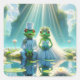 Frösche und Frösche auf Lily Pad Quadratischer Aufkleber
