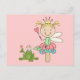 Eine blonde Froschfee mit einem grünen und rosa Kleid sitzt auf dem Polka gepunkteten Toadstool und sieht ihren zukünftigen Prinzen, den grünen Frosch, auf Froschfrösche-T - Shirt, Totentaschen, Karten, Sticker, Hüte, Magnete, Schlüsselanhänger und vieles mehr.