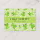 Niedliche, lustige und bezaubernde Visitenkarten mit grünen Fröschen. Modernes und trendiges Design, perfekt für Kinder, die spielen, spielplätze, aktivitäten center, Kinderbetreuung, Kinderbetreuung, Babysitter und Kindermädchen.